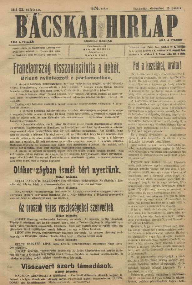 Bácskai Hirlap, 20. évf. 1916. december 15. 574. sz.