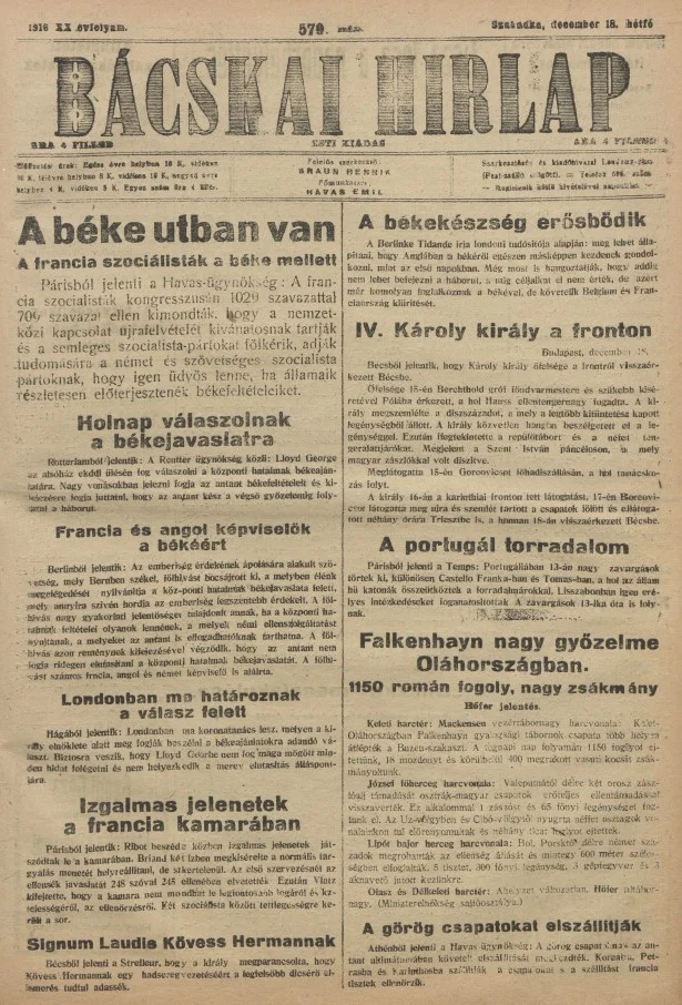Bácskai Hirlap, 20. évf. 1916. december 18. 579. sz.