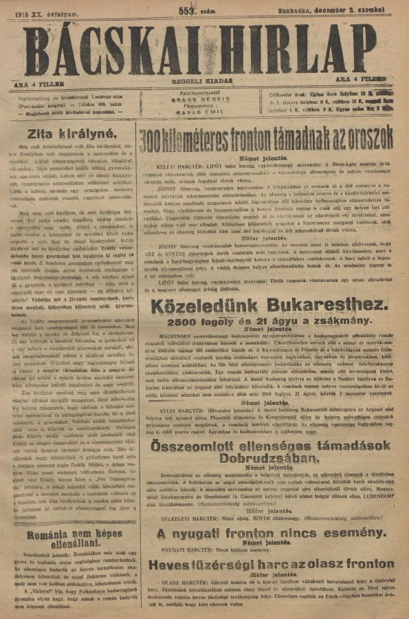 Bácskai Hirlap, 20. évf. 1916. december 2. 554. sz.