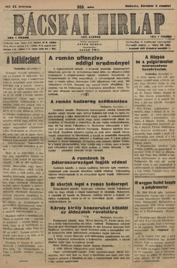 Bácskai Hirlap, 20. évf. 1916. december 2. 555. sz.