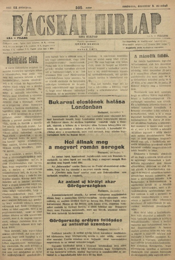 Bácskai Hirlap, 20. évf. 1916. december 9. 565. sz.