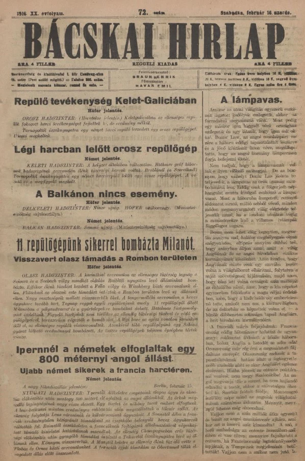 Bácskai Hirlap, 20. évf. 1916. február 16. 72. sz.