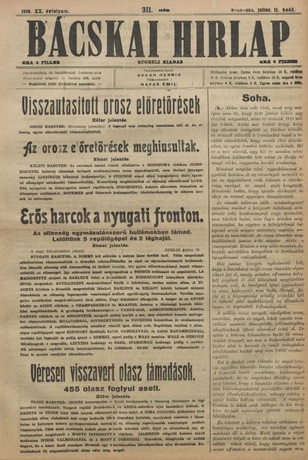 Bácskai Hirlap, 20. évf. 1916. július 11. 311. sz.