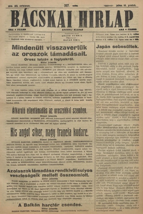 Bácskai Hirlap, 20. évf. 1916. július 14. 317. sz.