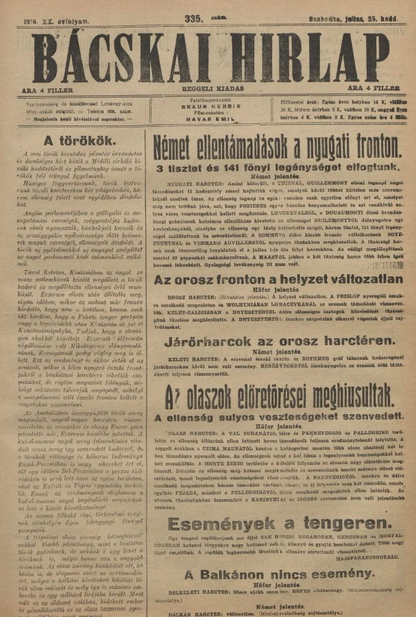 Bácskai Hirlap, 20. évf. 1916. július 24. 335. sz.