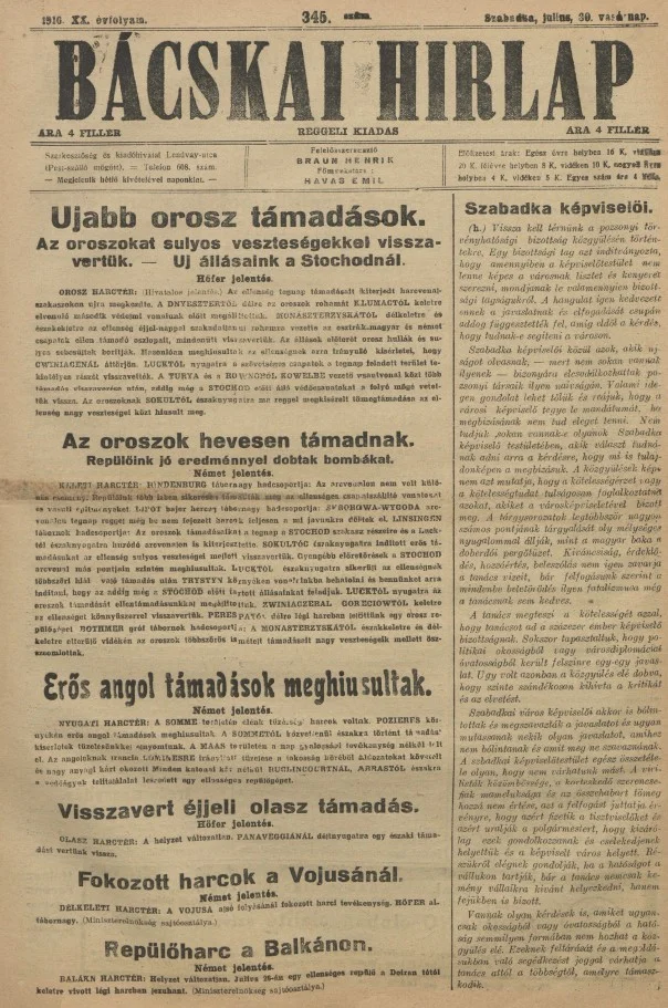 Bácskai Hirlap, 20. évf. 1916. július 30. 345. sz.