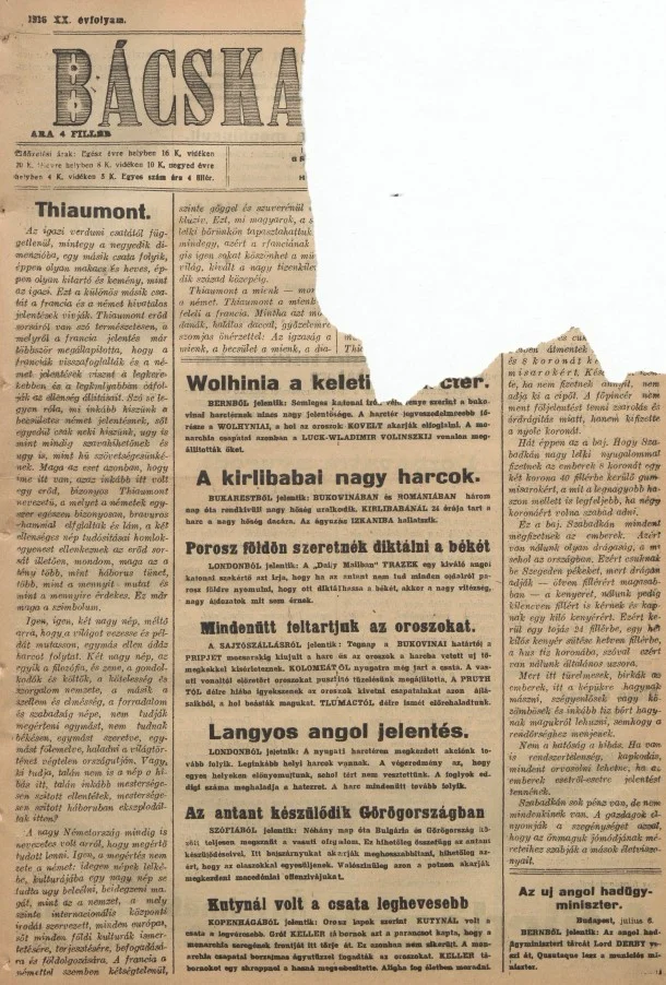 Bácskai Hirlap, 20. évf. 1916. július 6. 304. sz.