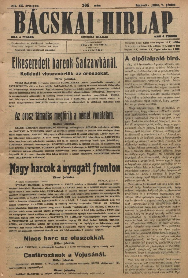 Bácskai Hirlap, 20. évf. 1916. július 7. 305. sz.