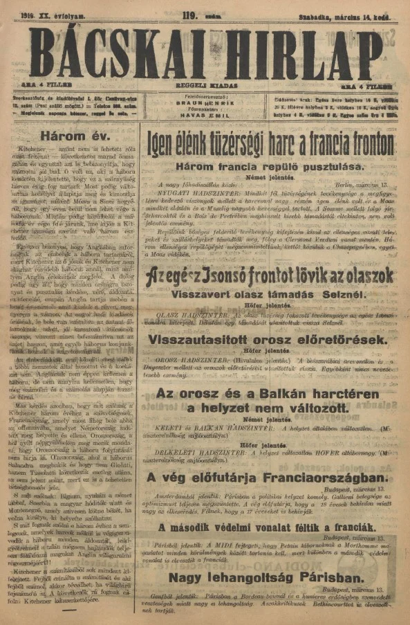 Bácskai Hirlap, 20. évf. 1916. március 14. 119. sz.