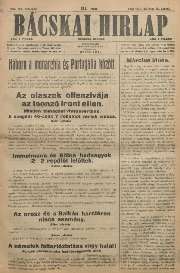 Bácskai Hirlap, 20. évf. 1916. március 15. 121. sz.