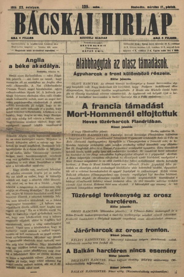 Bácskai Hirlap, 20. évf. 1916. március 17. 125. sz.