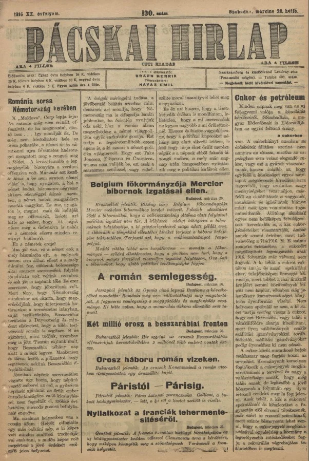 Bácskai Hirlap, 20. évf. 1916. március 20. 130. sz.