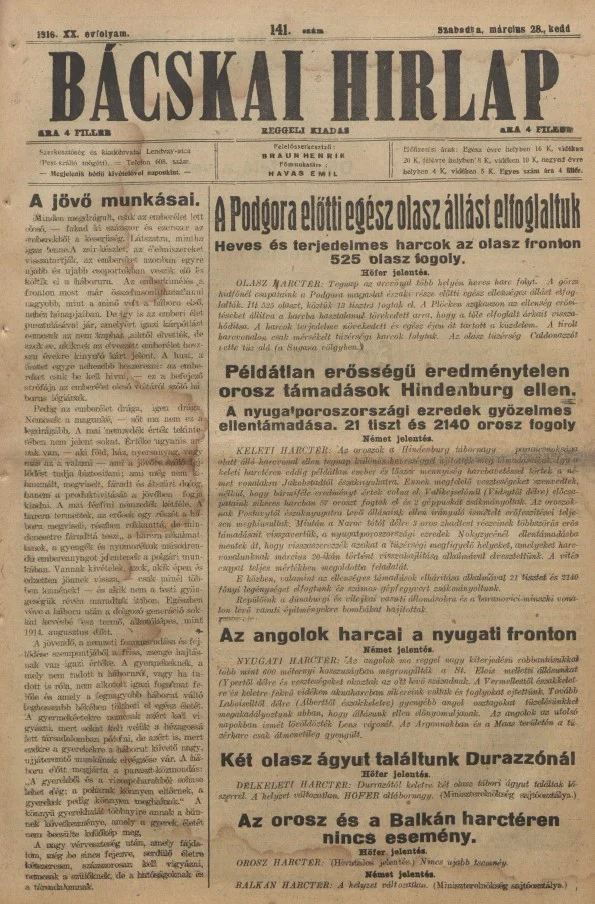 Bácskai Hirlap, 20. évf. 1916. március 28. 141. sz.