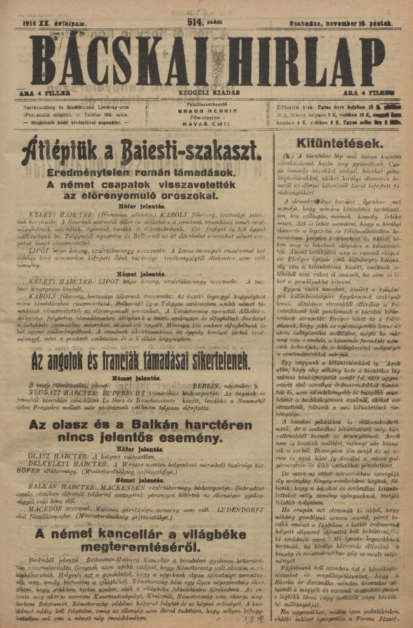 Bácskai Hirlap, 20. évf. 1916. november 10. 515. sz.