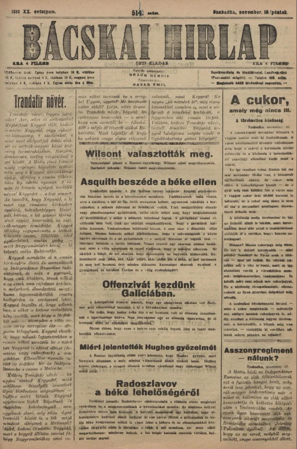 Bácskai Hirlap, 20. évf. 1916. november 10. 516. sz.