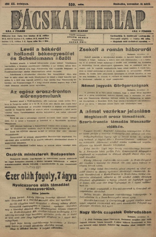Bácskai Hirlap, 20. évf. 1916. november 13. 520. sz.