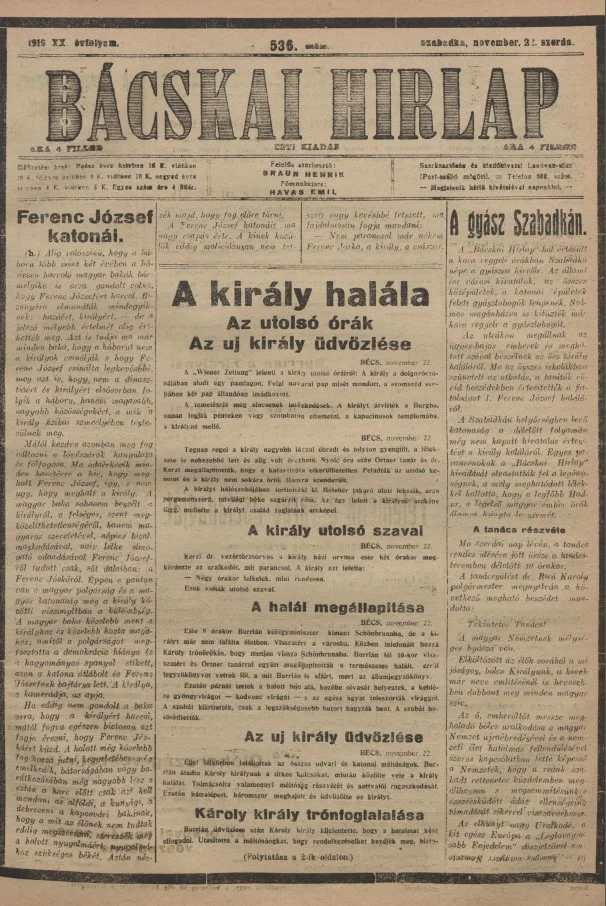 Bácskai Hirlap, 20. évf. 1916. november 22. 536. sz.