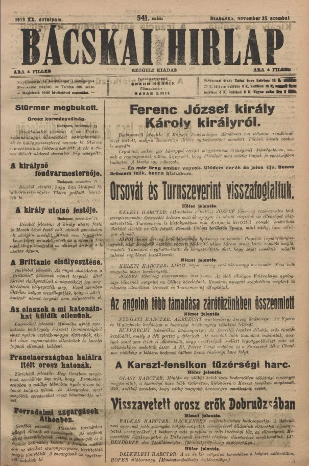 Bácskai Hirlap, 20. évf. 1916. november 25. 541. sz.