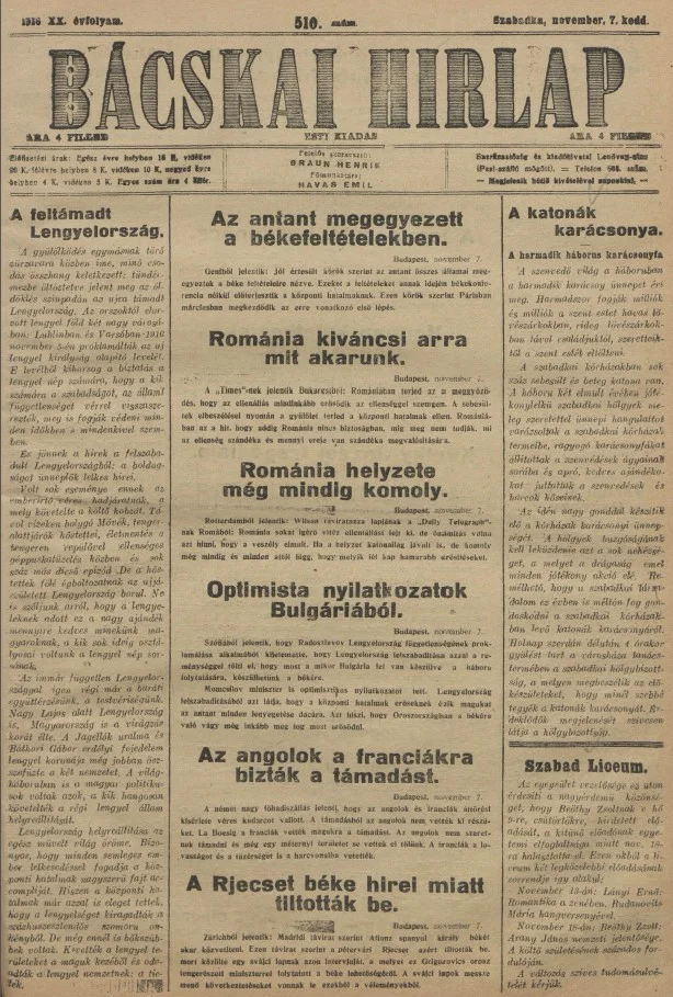 Bácskai Hirlap, 20. évf. 1916. november 7. 510. sz.