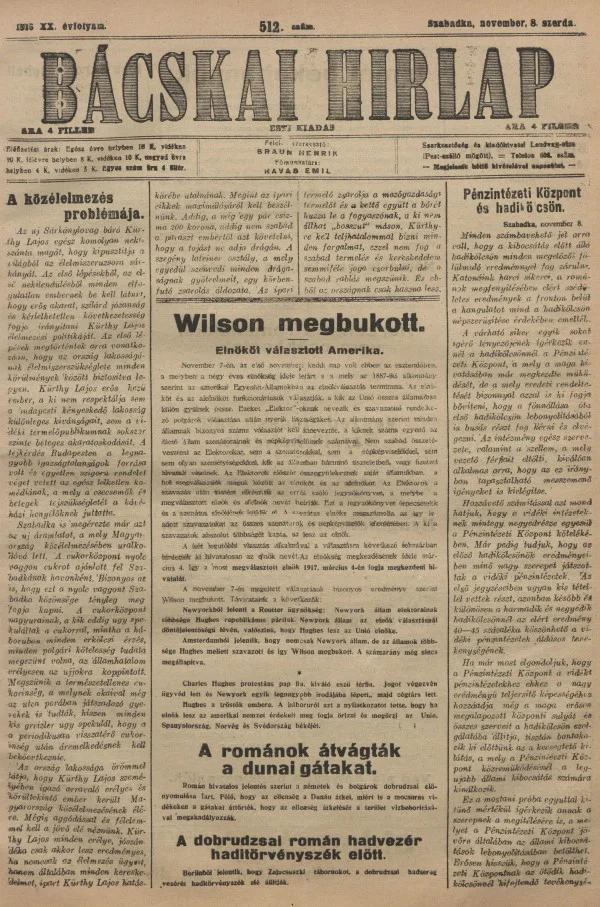 Bácskai Hirlap, 20. évf. 1916. november 8. 512. sz.