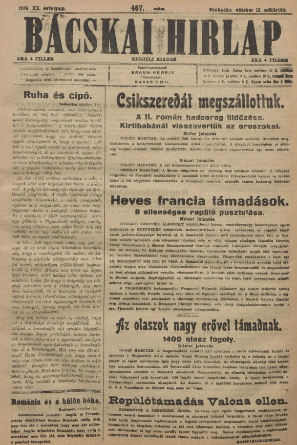 Bácskai Hirlap, 20. évf. 1916. október 12. 467. sz.
