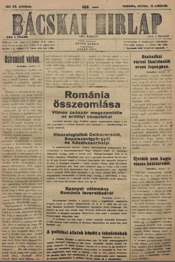 Bácskai Hirlap, 20. évf. 1916. október 12. 468. sz.
