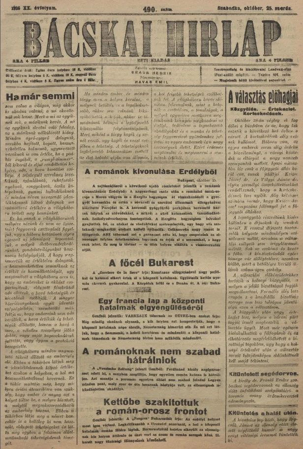 Bácskai Hirlap, 20. évf. 1916. október 25. 490. sz.
