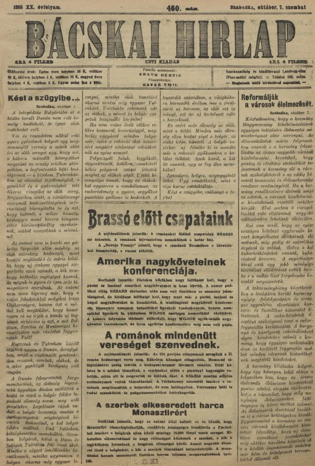 Bácskai Hirlap, 20. évf. 1916. október 7. 460. sz.