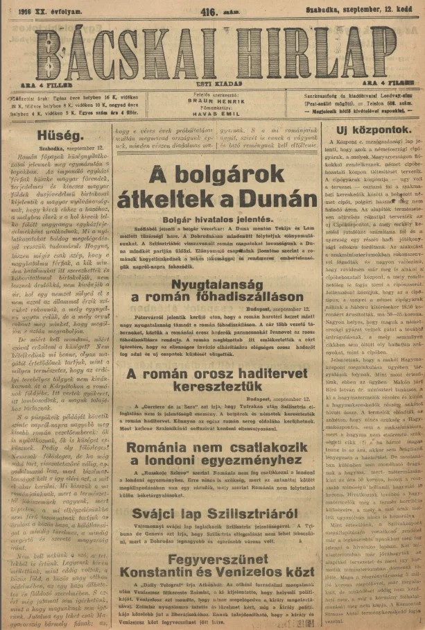 Bácskai Hirlap, 20. évf. 1916. szeptember 12. 416. sz.