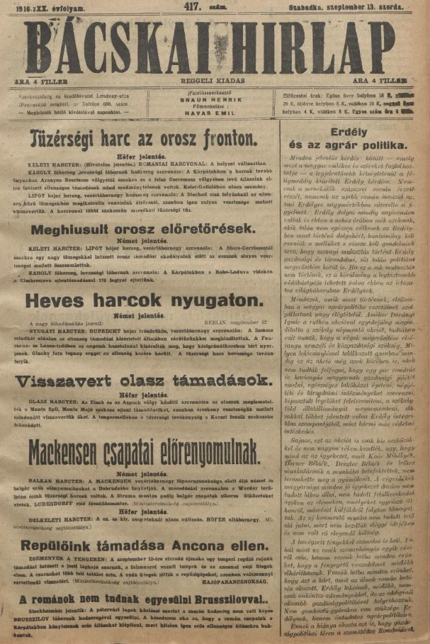 Bácskai Hirlap, 20. évf. 1916. szeptember 13. 417. sz.