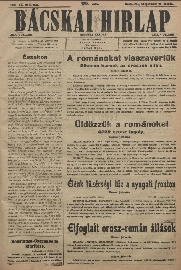 Bácskai Hirlap, 20. évf. 1916. szeptember 20. 429. sz.