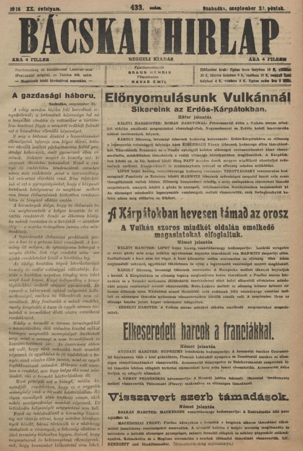 Bácskai Hirlap, 20. évf. 1916. szeptember 22. 433. sz.