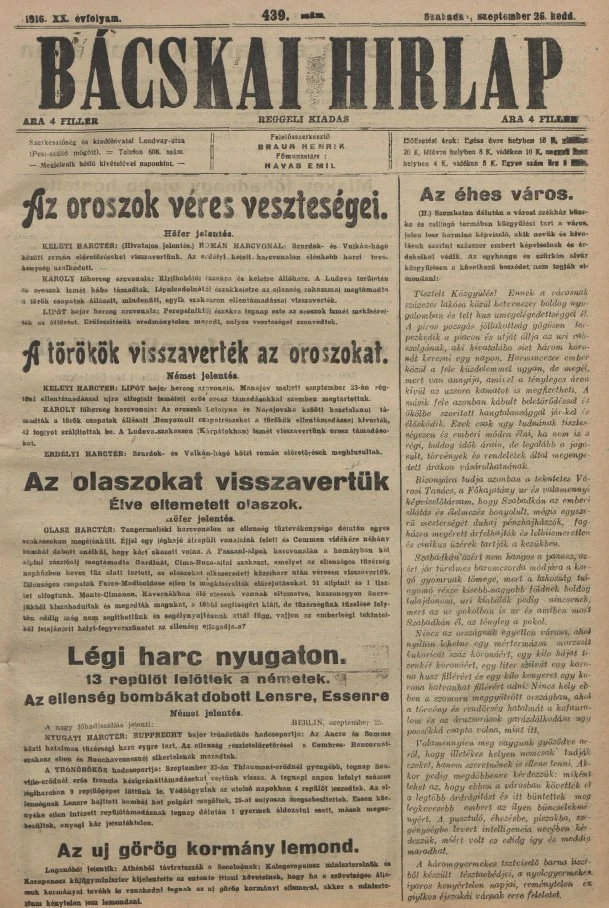 Bácskai Hirlap, 20. évf. 1916. szeptember 26. 439. sz.