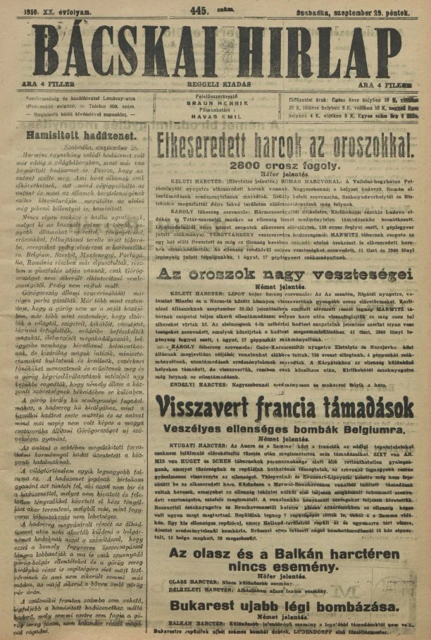 Bácskai Hirlap, 20. évf. 1916. szeptember 29. 445. sz.