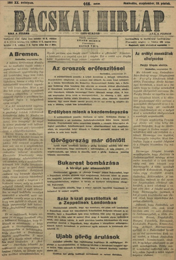Bácskai Hirlap, 20. évf. 1916. szeptember 29. 446. sz.