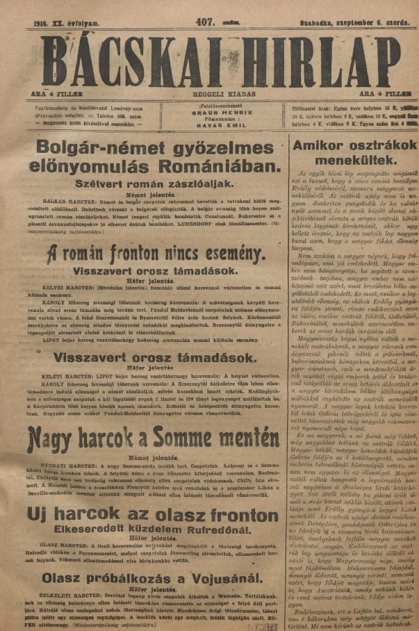 Bácskai Hirlap, 20. évf. 1916. szeptember 6. 407. sz.
