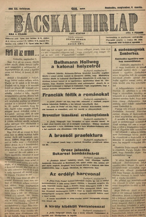 Bácskai Hirlap, 20. évf. 1916. szeptember 6. 408. sz.