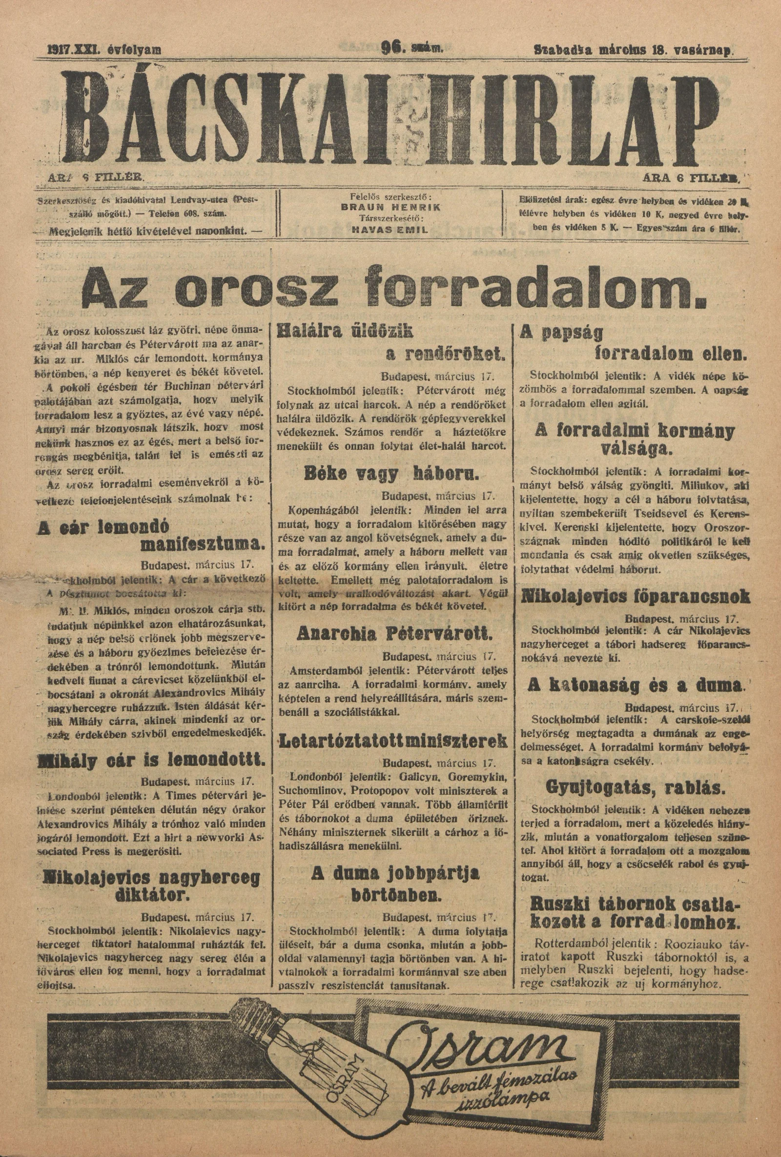 Bácskai Hirlap, 21. évf. 1917. március 18. 96. sz.