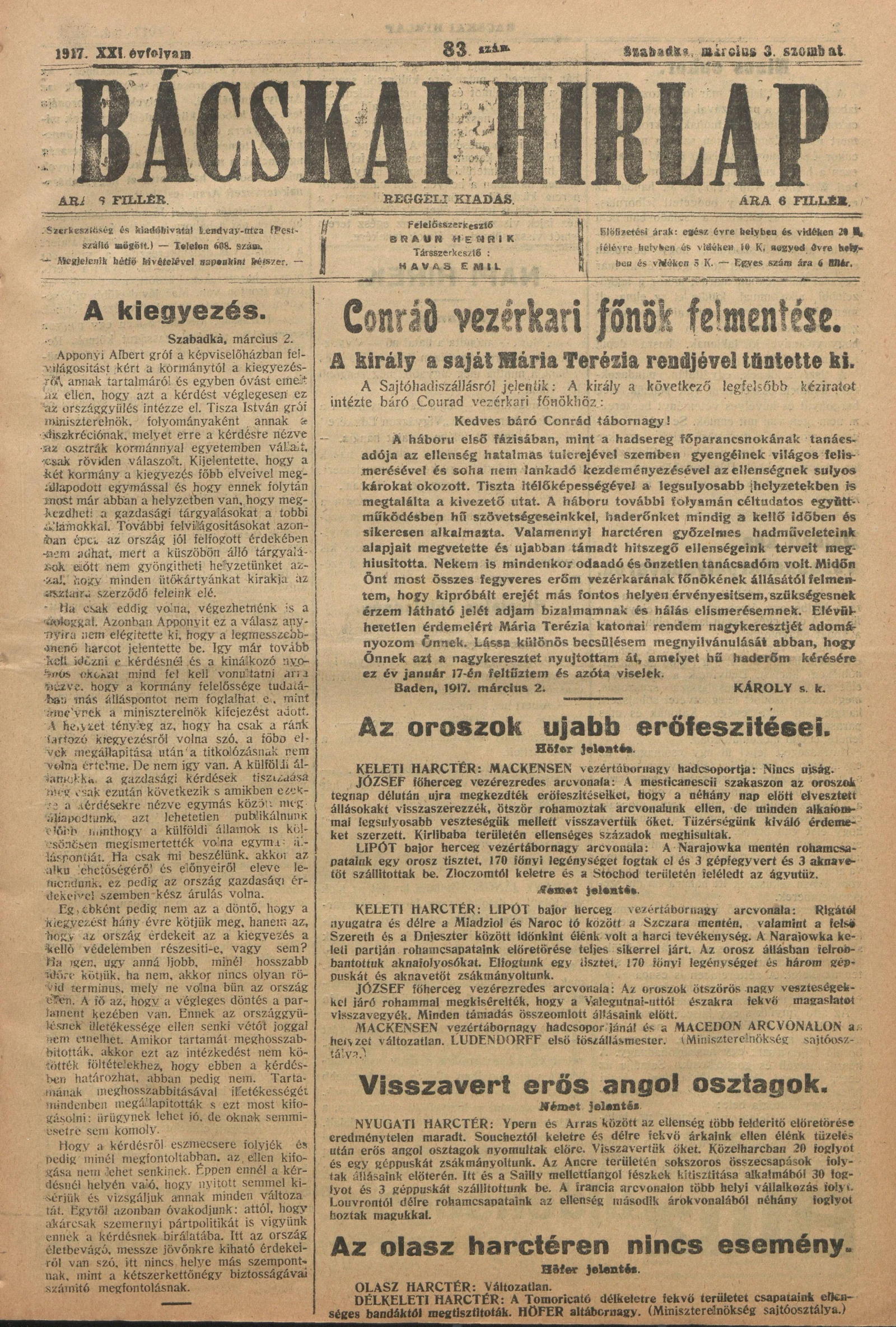 Bácskai Hirlap, 21. évf. 1917. március 3. 83. sz.