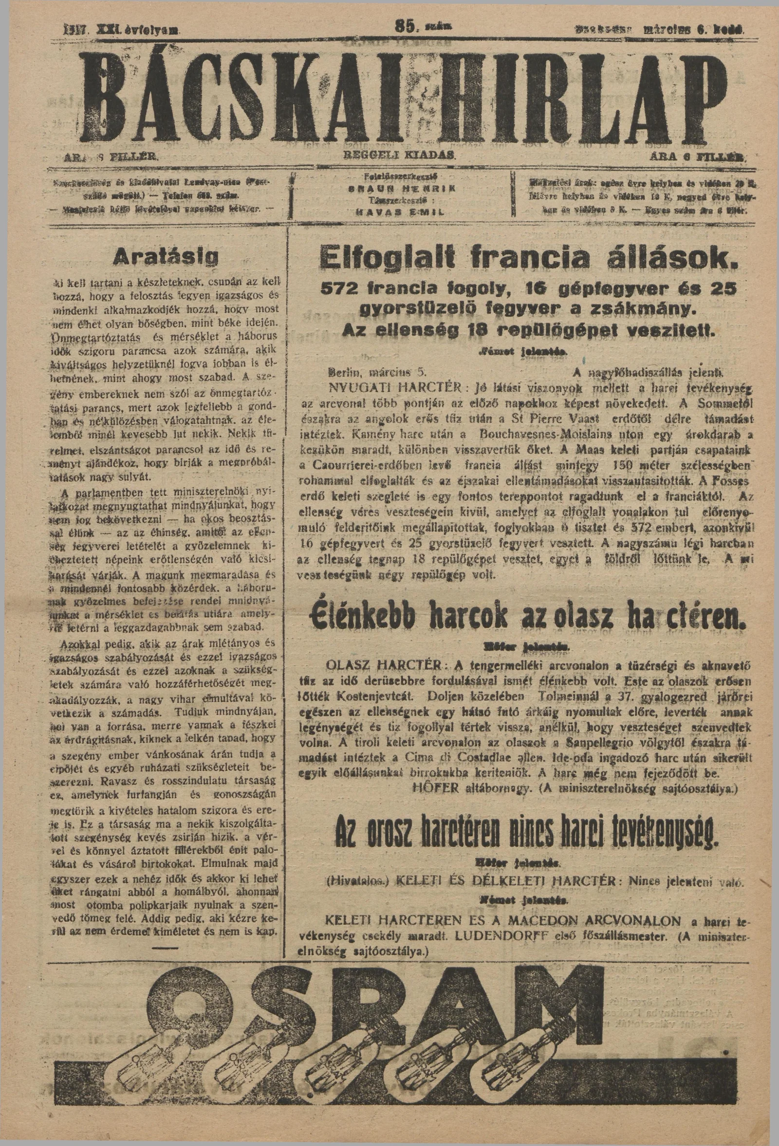 Bácskai Hirlap, 21. évf. 1917. március 6. 85. sz.