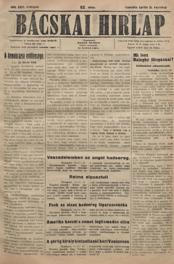 Bácskai Hirlap, 22. évf. 1916. április 21. 92. sz.