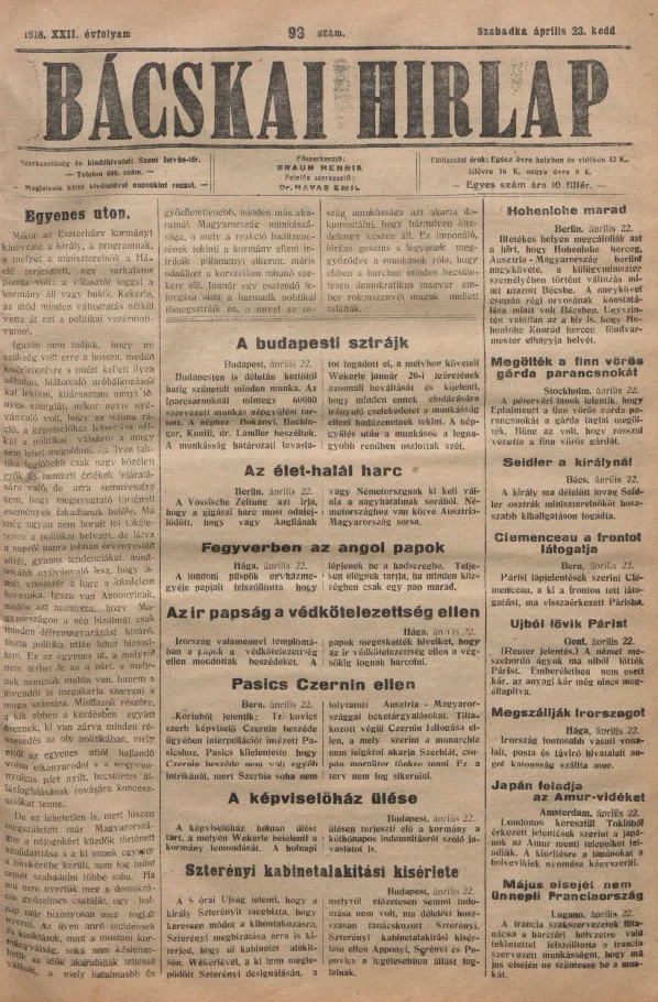 Bácskai Hirlap, 22. évf. 1918. április 23. 93. sz.