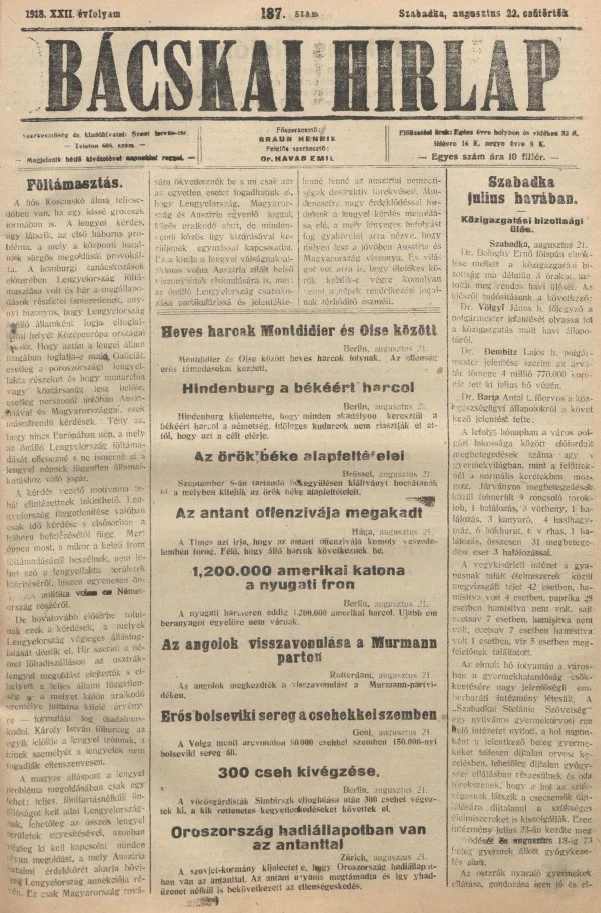 Bácskai Hirlap, 22. évf. 1918. augusztus 22. 187. sz.