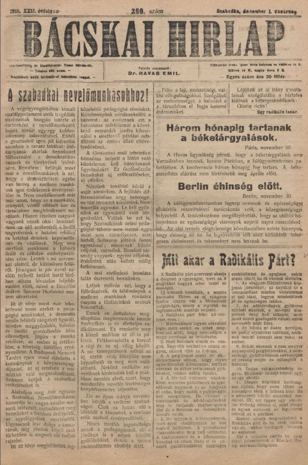 Bácskai Hirlap, 22. évf. 1918. december 1. 269. sz.