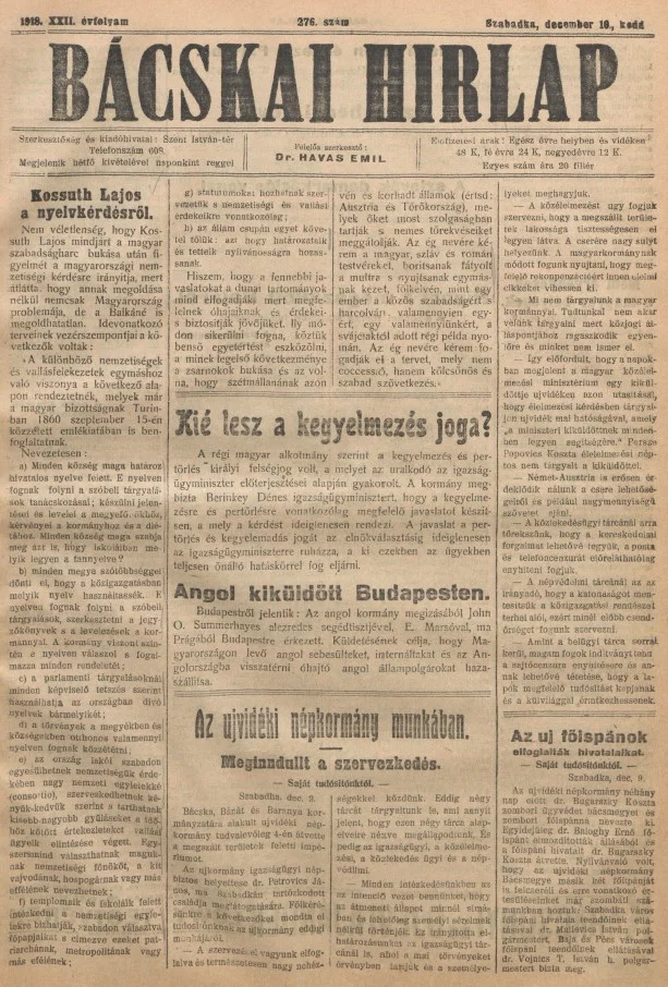 Bácskai Hirlap, 22. évf. 1918. december 10. 276. sz.