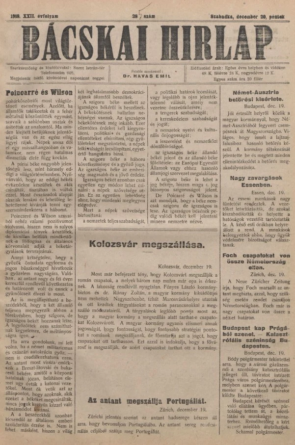 Bácskai Hirlap, 22. évf. 1918. december 20. 285. sz.