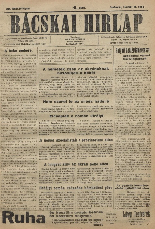 Bácskai Hirlap, 22. évf. 1918. február 19. 41. sz.
