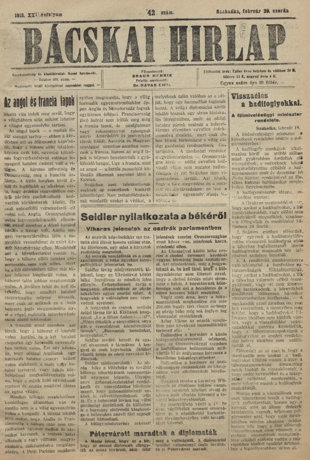 Bácskai Hirlap, 22. évf. 1918. február 20. 42. sz.