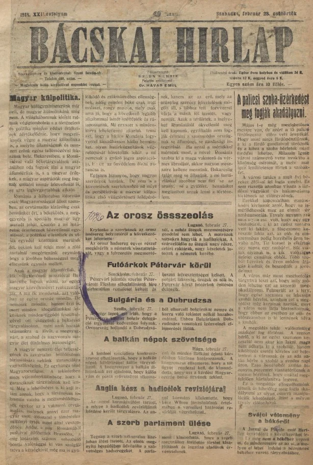 Bácskai Hirlap, 22. évf. 1918. február 28. 49. sz.