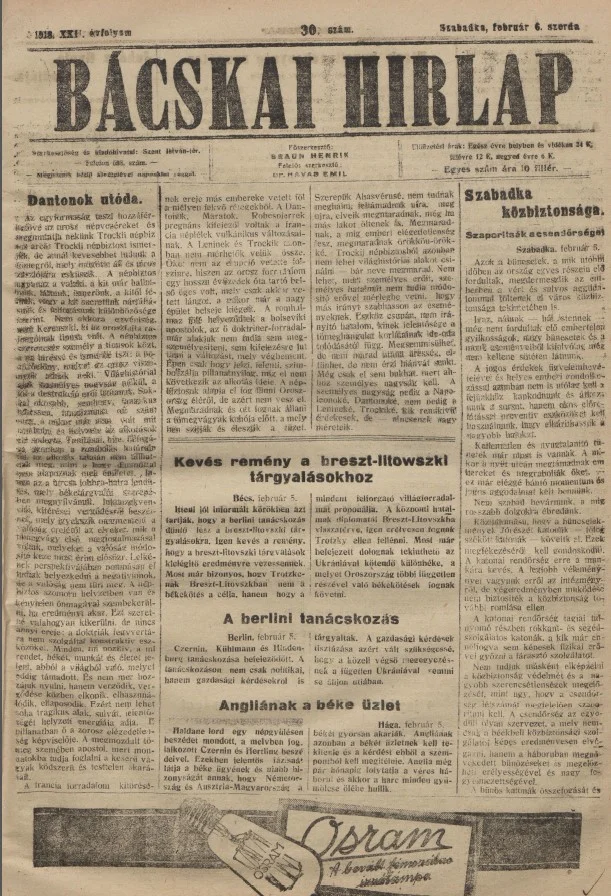 Bácskai Hirlap, 22. évf. 1918. február 6. 30. sz.